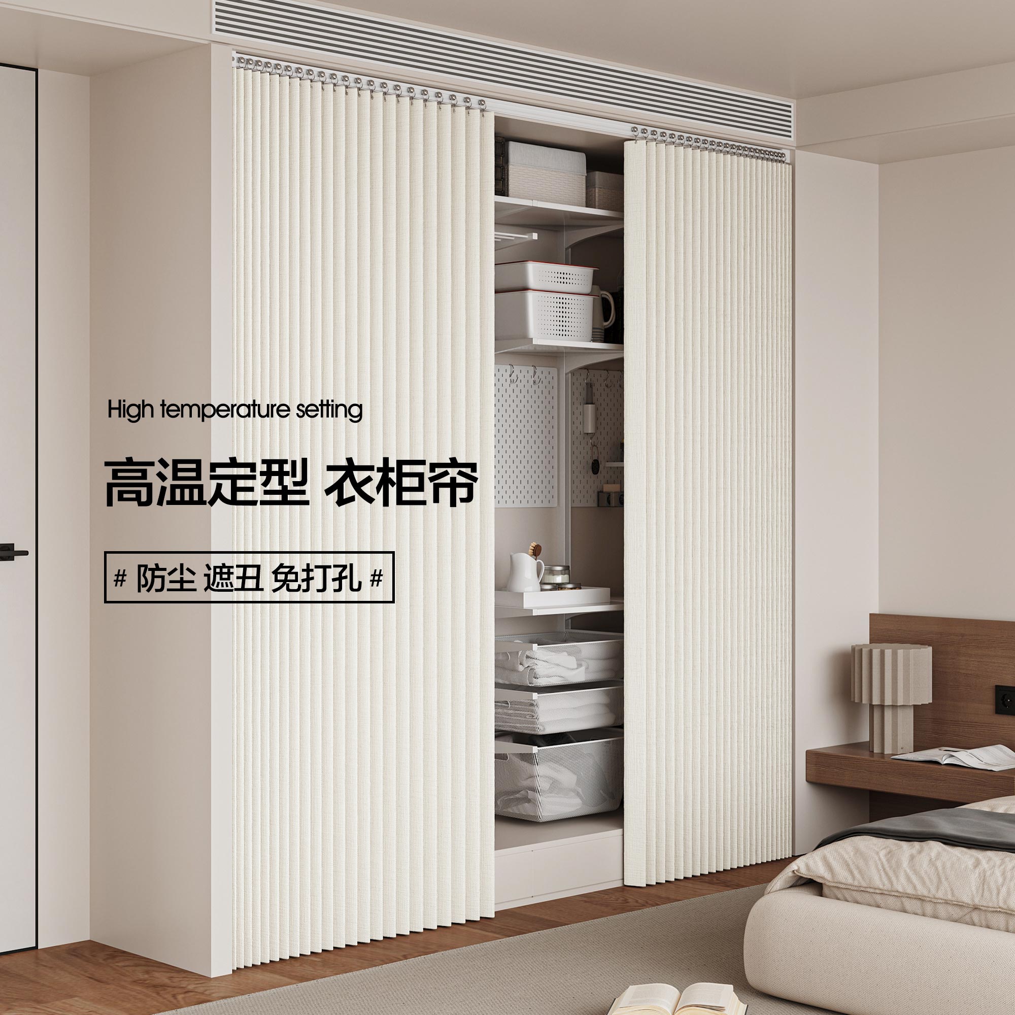 kt ドアレスワードローブカーテン折りたたみキャビネットカーテンクローク防塵カーテン大型ワードローブスライドレールパンチフリードアカーテン磁気