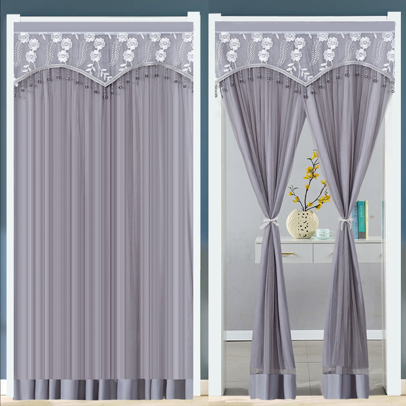 kt パンチフリー防蚊ドアカーテン生地ガーゼカーテン寝室レースドアカーテンパーティションクリームスタイル遮光カーテン吊り下げ二重層