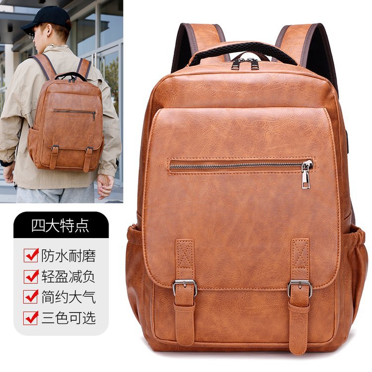 クロスボーダーレトロリュックサックファッションPUリュックサック型男差旅大容量リュックサックファッション学生男性用カバン