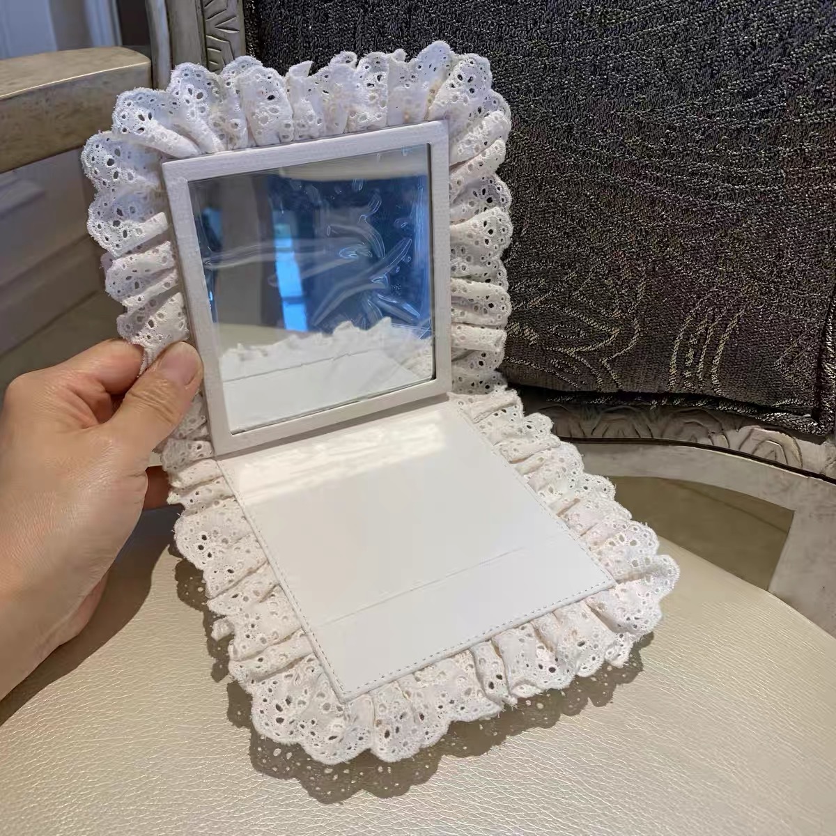 レトロレース化粧鏡旅行携帯収納折り畳み鏡蝶結び少女立体化粧鏡