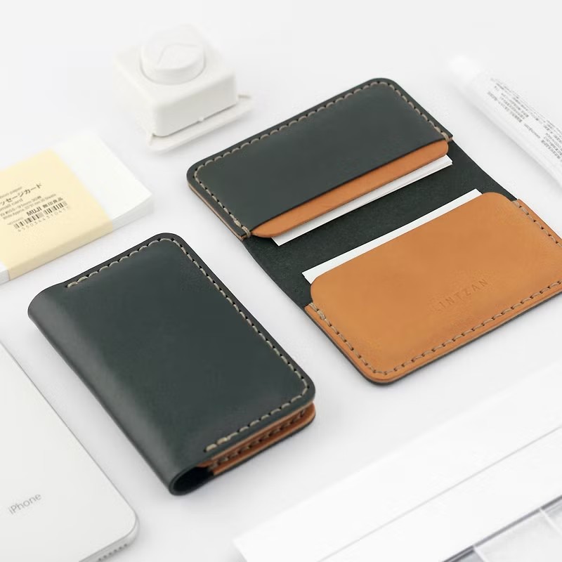 シンプルな革の名刺はファッション的な携帯で色を合わせて名刺を入れます。