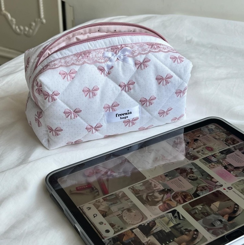 Ins人気蝶結びレース化粧ポーチレディース手持ち化粧品収納バッグスキンケア収納袋
