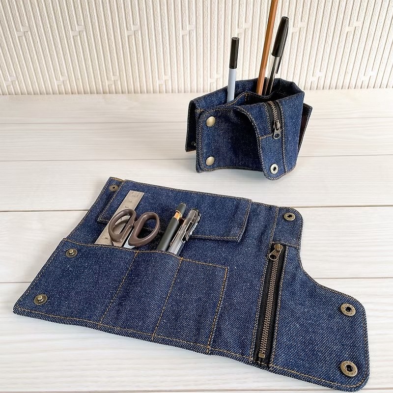 デニム筆筒折り畳み式布質筆袋学生携帯文房具カバン事務机ファイル筆箱