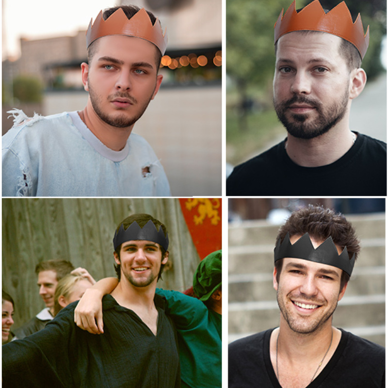 中世革クラウンヘッドバンド男女ロールプレイングヘッドアクセサリーpu革クラウンバースデーキャップ