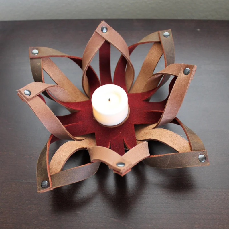 レトロ牛革編み燭台創意蓮花台形燭台屋外照明燭台器