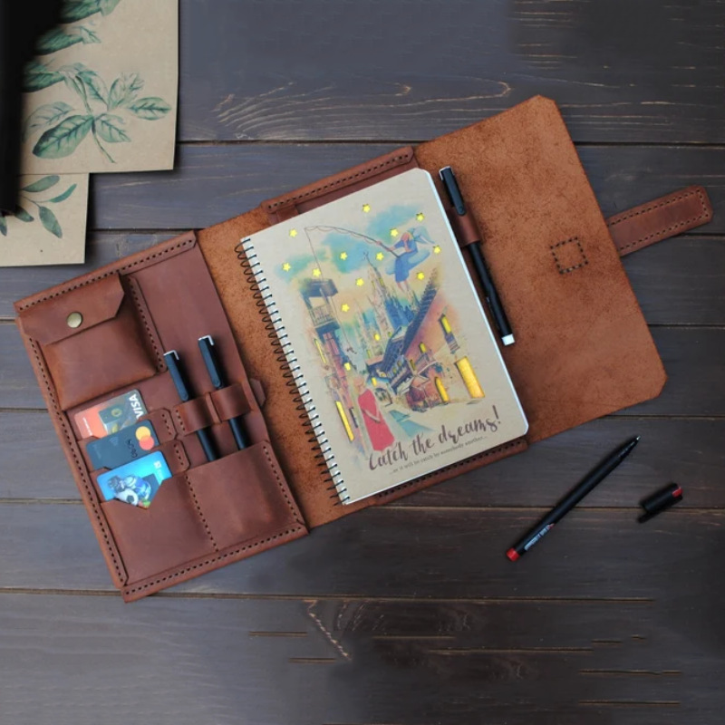 レザー/牛革ブックカバー多機能本革ブックカバーカードホルダー付きペンホルダーレトロ牛革ブックカバー