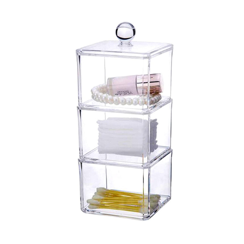 3層綿棒収納ボックス蓋付き透明化粧綿片整理ボックスに化粧落とし綿ボックス防塵アクセサリーボックスを重ねることができます。