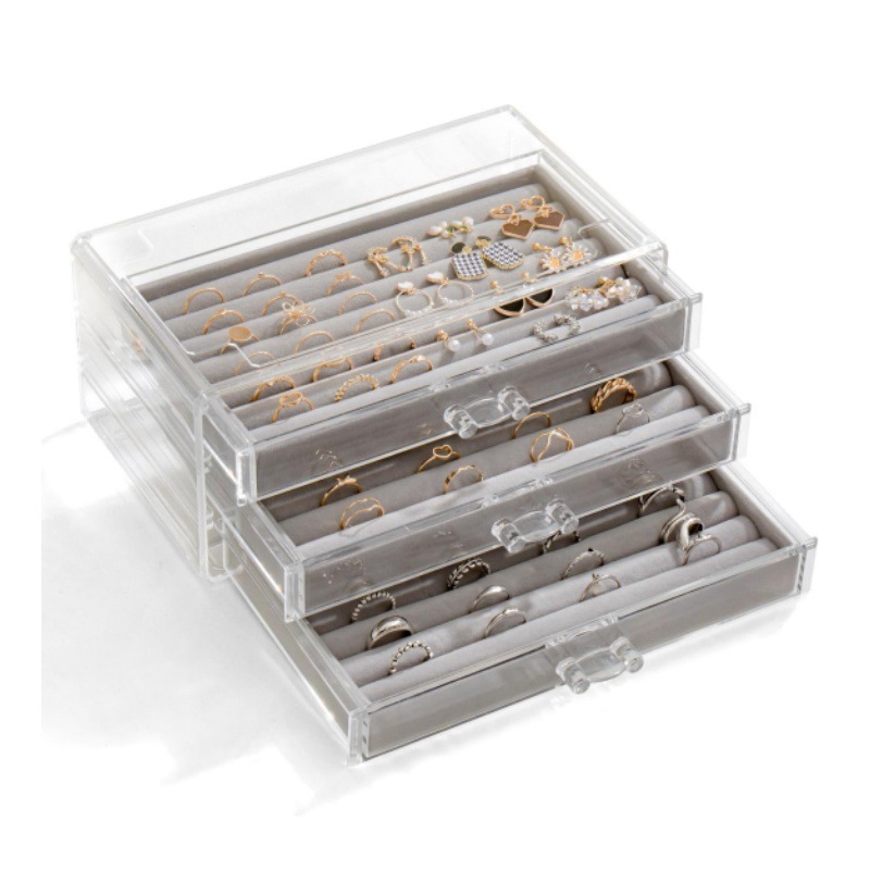 国境を越えた新製品アクリル3層引き出しジュエリーケース透明指輪収納ケースデスクトップ軽贅沢ピアス整理ケース