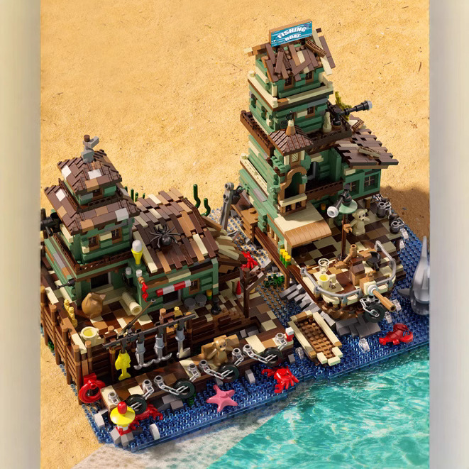 新型予高互換レゴ漁師別荘海辺小屋街並み建築住宅模型積み木益智玩具