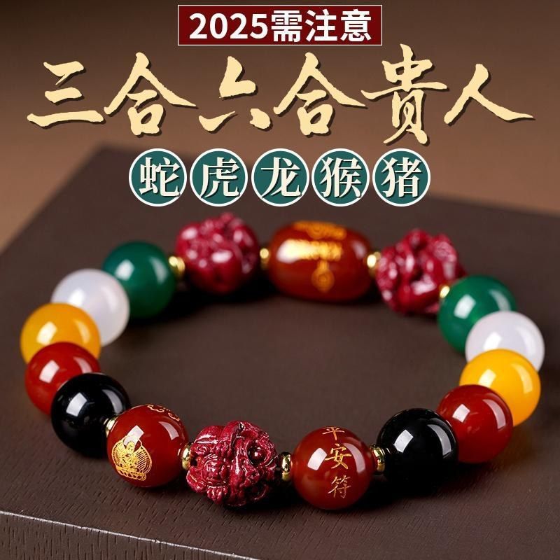 2025蛇年本命年泰歳ブレスレット女性金天然瑪瑙五行手串朱砂三合六合ブレスレット