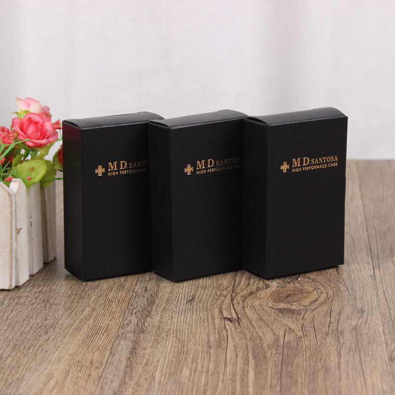 箔押し紙箱の光沢面黒カードは、必要に応じて蓋箱精油包装箱を生産することができる