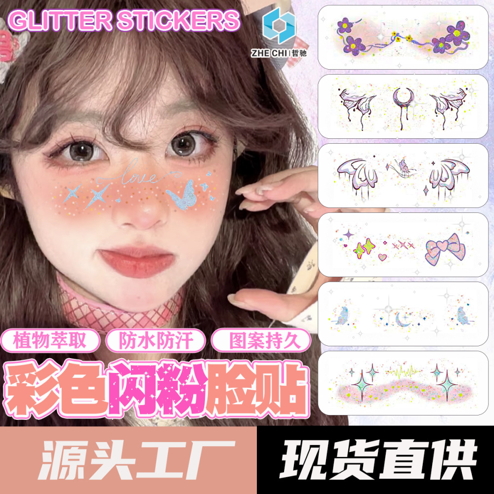 2025新型のキラキラの刺青は可愛い化粧の顔を貼ってパーティーの活動を貼ります。