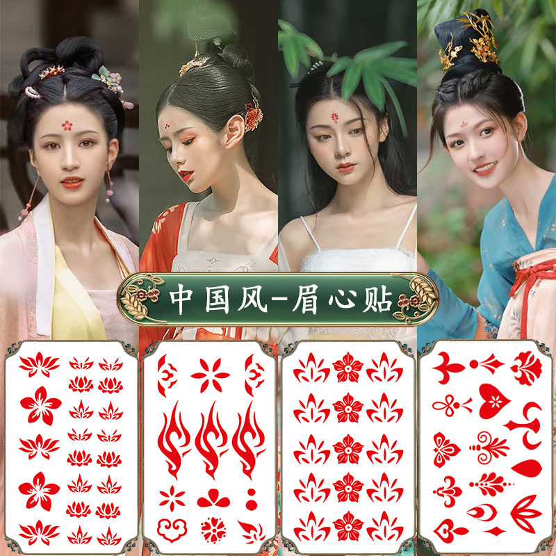 子供の時代の眉毛の心は防水の汗の女性の持続的な顔の額のプリントの漢服の花のの紙の眉毛の心の入れ墨を貼って貼ります。
