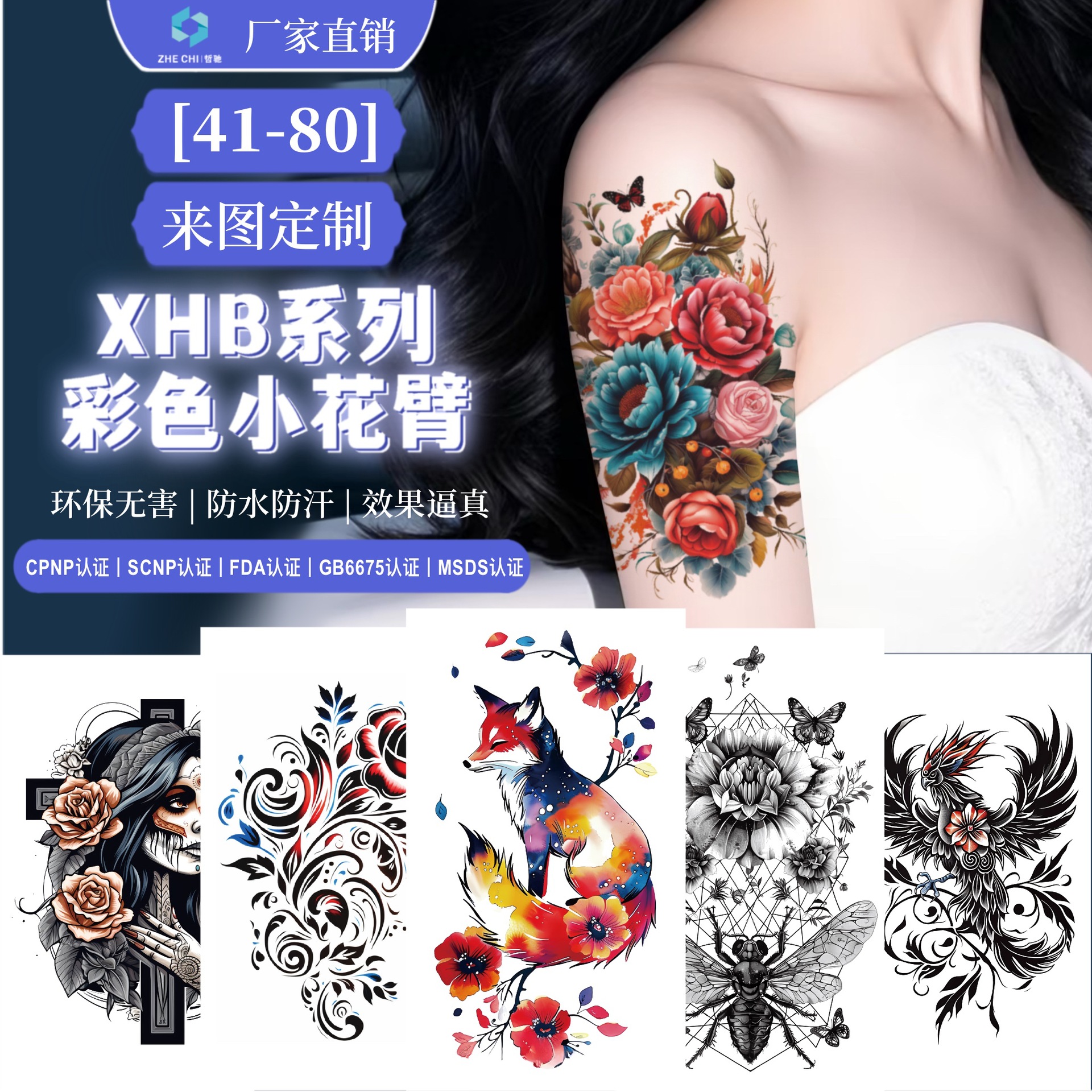 新しい热い贩売カラーシミュレーションの入れ墨のステッカーファッション花の腕の防水の入れ墨のステッカーの长持ちするボディの絵画