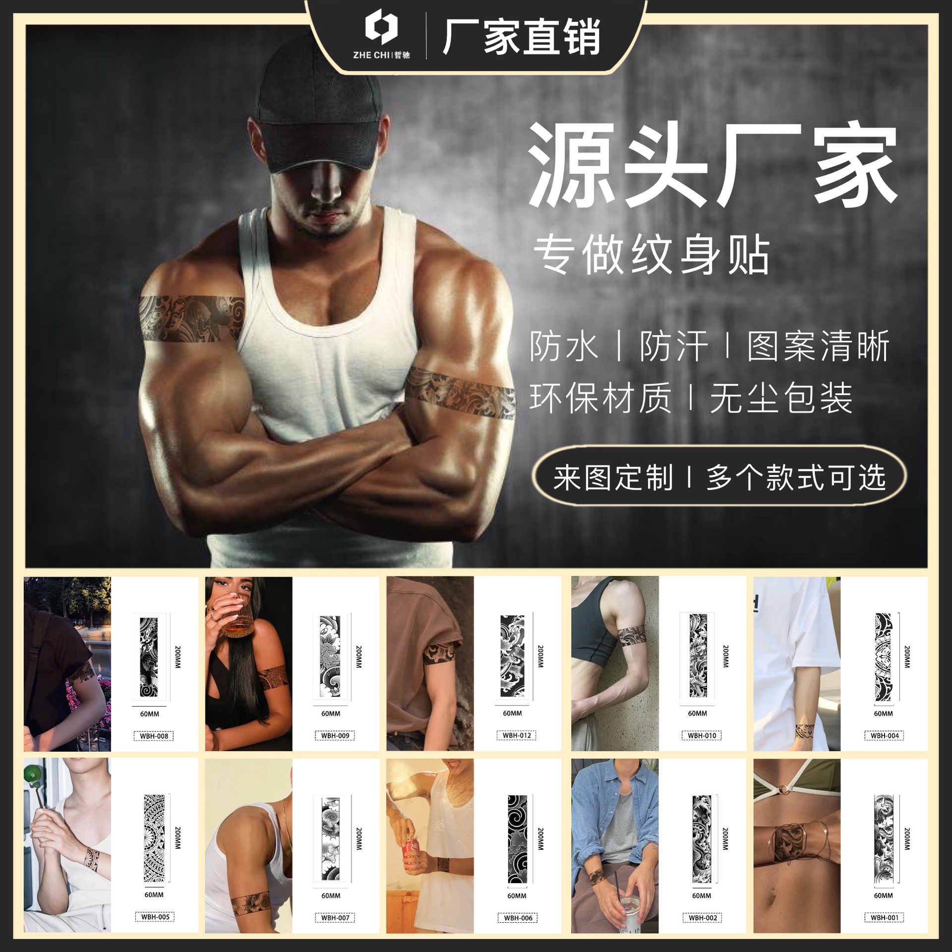 新型の越境半永久草本の紋章は防水腕の腕のジュースの腕の輪を貼って持続的に使い捨てに貼ります。