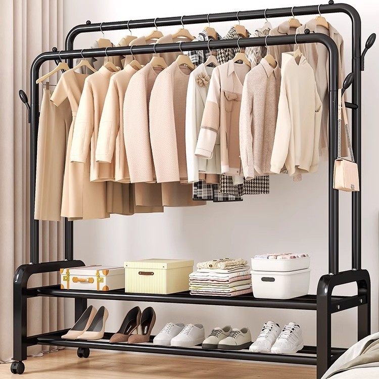 簡易ハンガーハンガー床置き家庭用寝室服収納ラック移動可能フードラック太め物置ラック