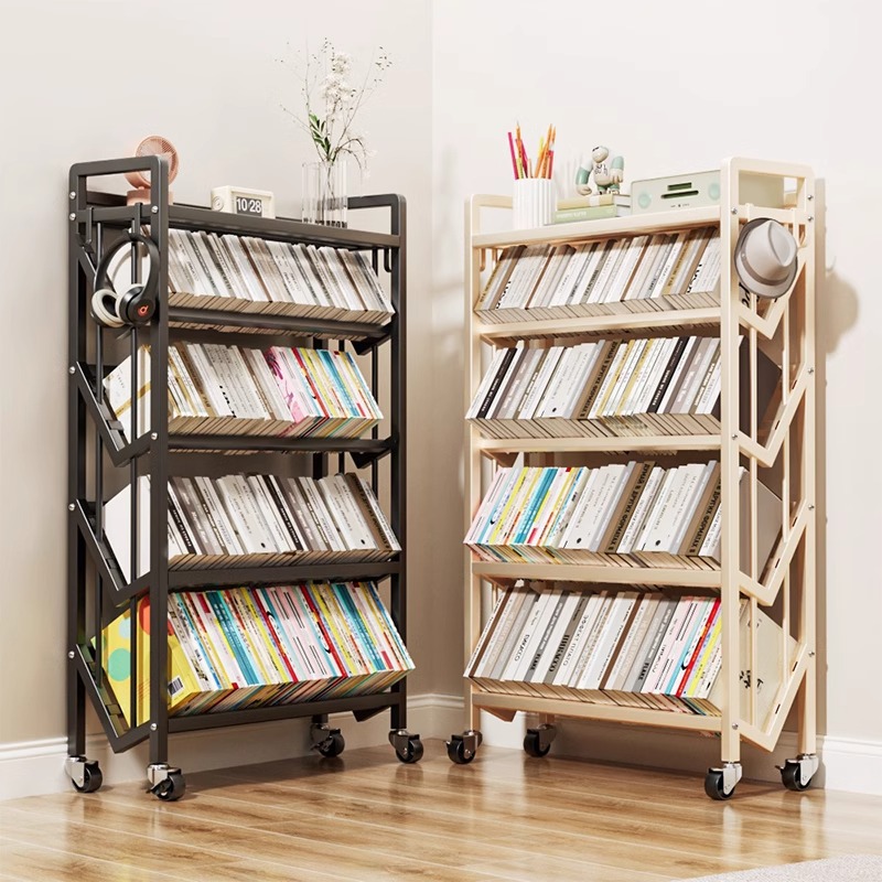 本棚、フロアラック、可動式小型カート、書籍収納ラック、家庭用多層式、バッグ収納、キャスター付き移動式