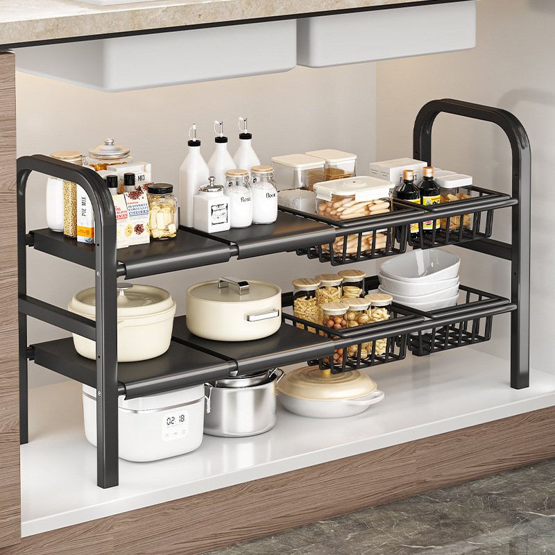 キッチンラックシンクキャビネット格納式階層型床置き多機能多層ポット収納ラック