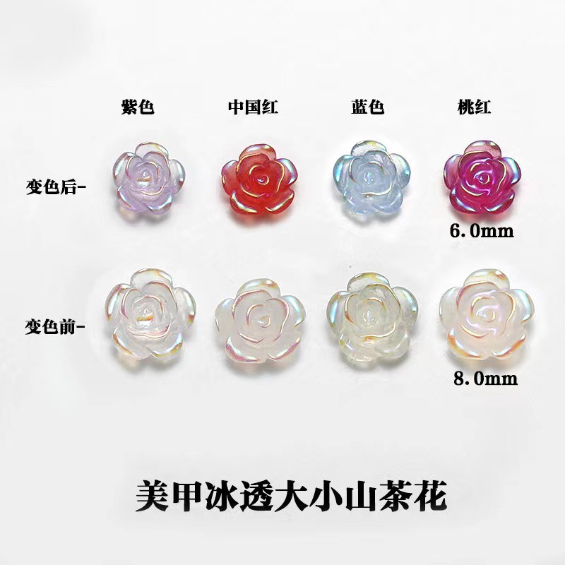 ネイル光感変色ツバキの花透明極光氷透立体バラ色爪装飾卸売り