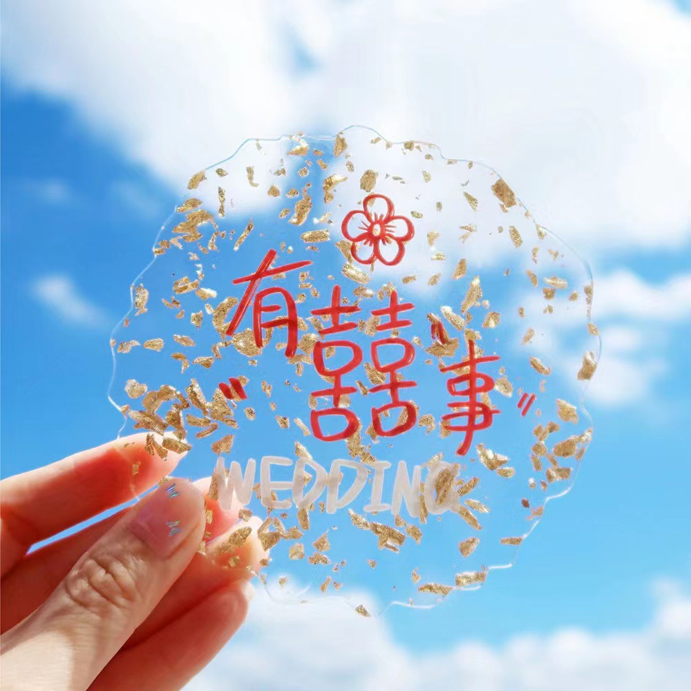 ホーム新商品金箔アクリルコースター震え音小紅書喜コースターお土産新婚プレゼントins結婚式