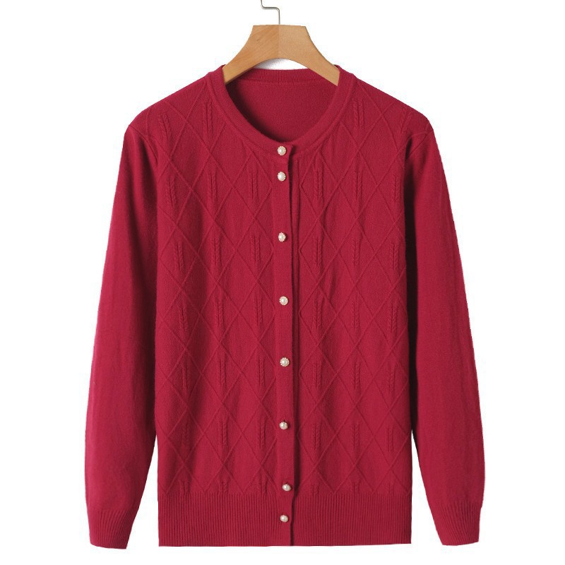 源工場製 母親向け春秋ニットトップス おばあちゃんセーター 女性用コート 中高年女性用長袖カーディガン