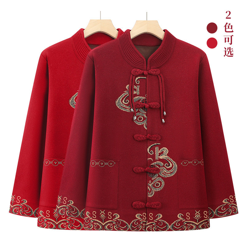 源工場 秋冬 新中式カーディガンジャケット 中国風 冬服 母親服 おばあちゃん用 暖かいトップス