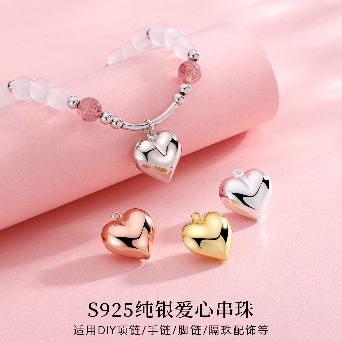 S925純銀立体ハート型桃心愛ペンダントdiyアクセサリーひもネックレスブレスレット部品メッキk金吊り具