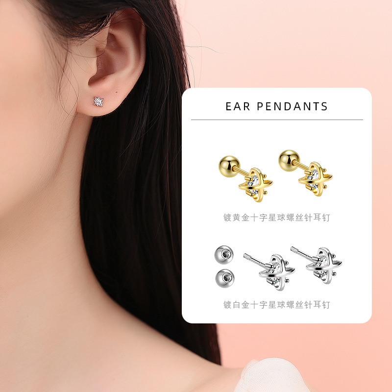 クロスボーダー専用s925純銀小柄な雰囲気のネジでピアスを締めます。