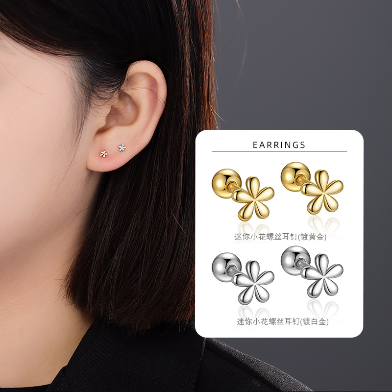 S925純銀の光沢のある顔の五弁の小さい花のねじのボールはピアスを塞いで、日韓のファッションの森系の女性はイヤリングを締めます。