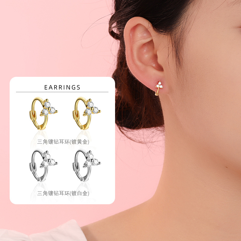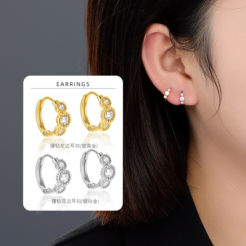 S925純銀のダイヤモンドのレースの3つのドリルの耳のボタンの日韓のファッションの気質はk金をめっきします。