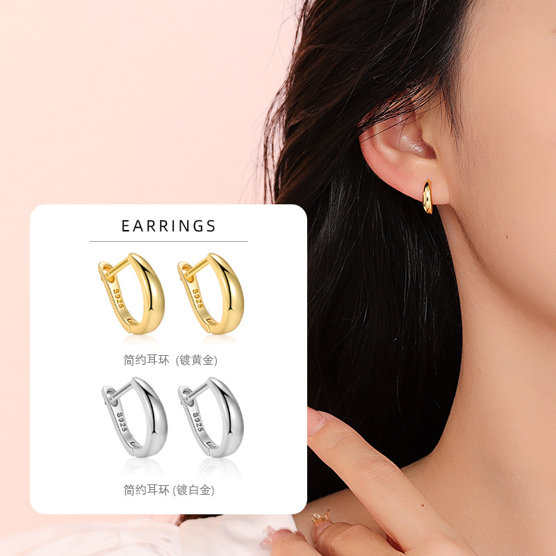 S 925純銀の広い面の素の輪のイヤリングの女性欧米の越境の対外貿易の軽い豪華感のinsは18kの金をめっきして耳の穴の耳の輪を養います。