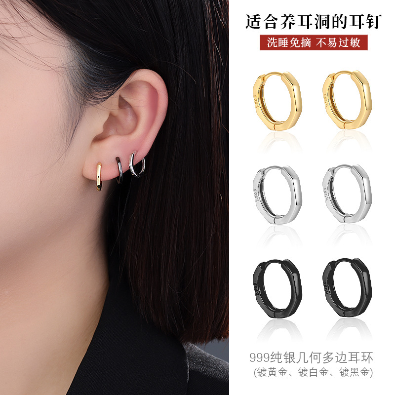 S999足銀幾何学素輪イヤリングは贅沢で高級感があります。