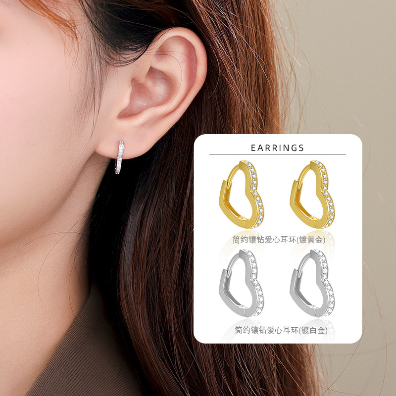 S925純銀愛ジルコンイヤリング女性2025新型シンプル高級軽豪華小衆甘い耳輪耳ボタン