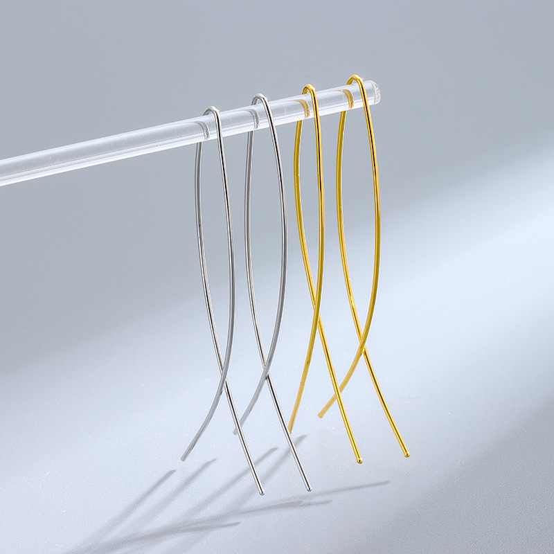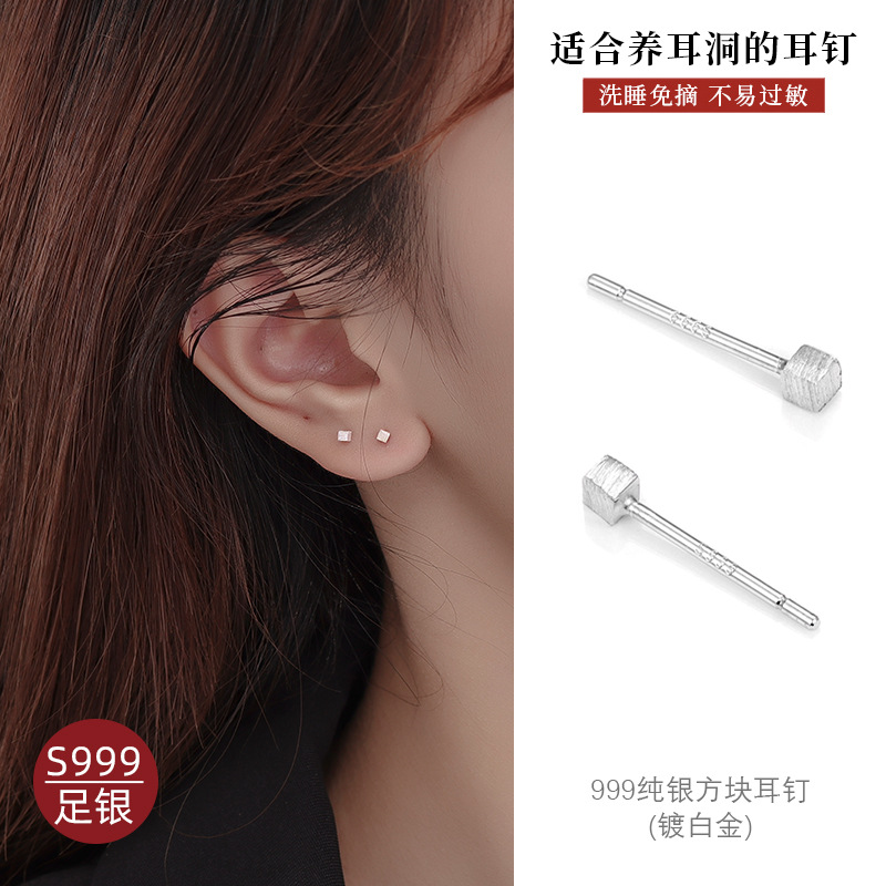 S 999純銀の糸を引く四角のピアスの女性は簡単に寝ます。耳の穴を摘んで小さくて豪華な感じがします。