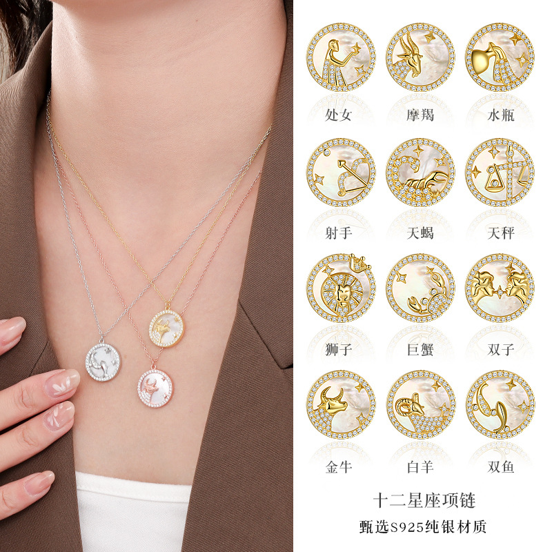 S925純銀ライオン白羊座には、白貝母鎖骨ネックレス2023年夏潮十二星座ペンダントが入っている