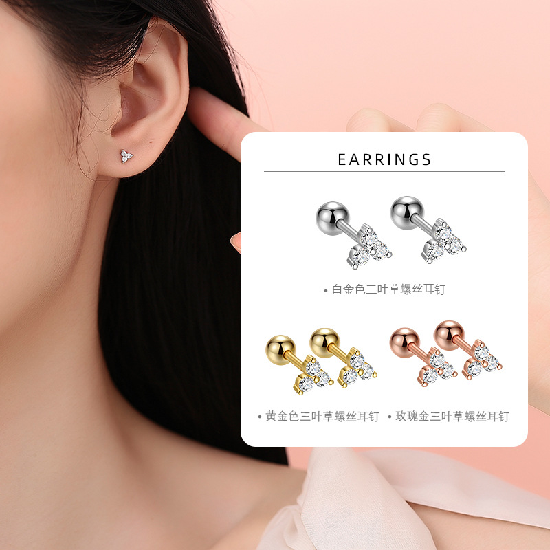 S 925純銀は三つ葉のクローバーのねじ針を入れて耳栓のピアスを免除します。