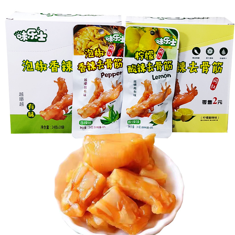 味楽士20包ピーマンレモンの酸っぱい辛い骨のない鶏の爪は骨の筋の鶏肉の熟食に行って袋を開けてすぐに食べます。
