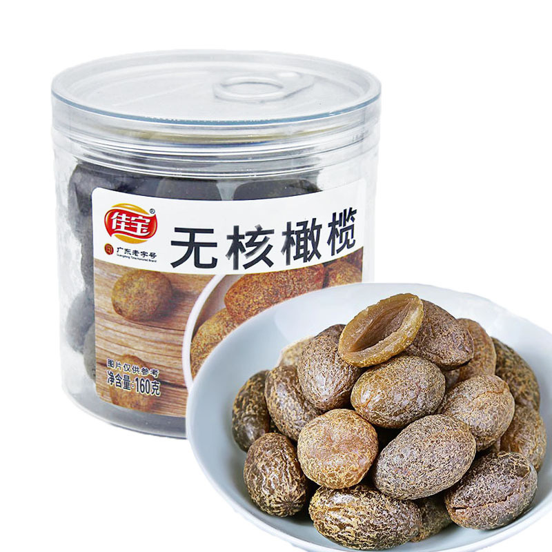 佳宝陳皮楊梅160g缶は食欲をそそる梅子の冷たい果物の砂糖漬けの果物の砂糖漬けの果物の乾燥した事務の間食の軽食を詰めます。