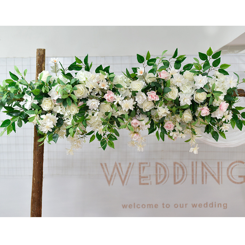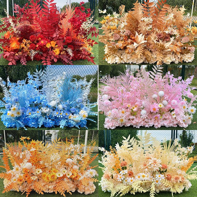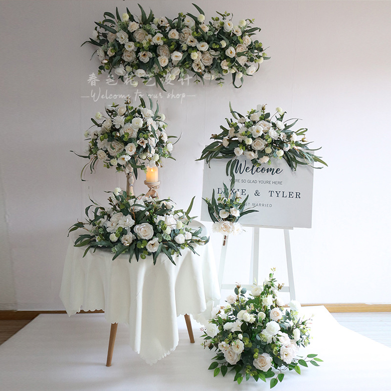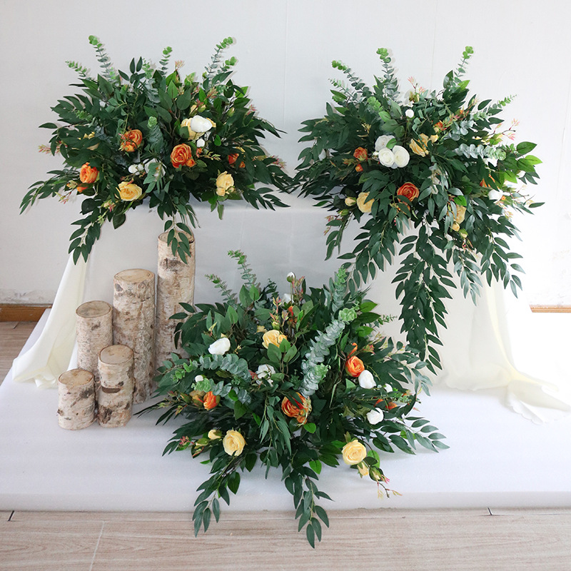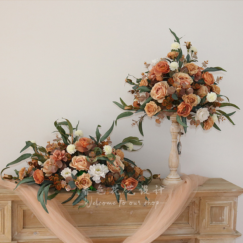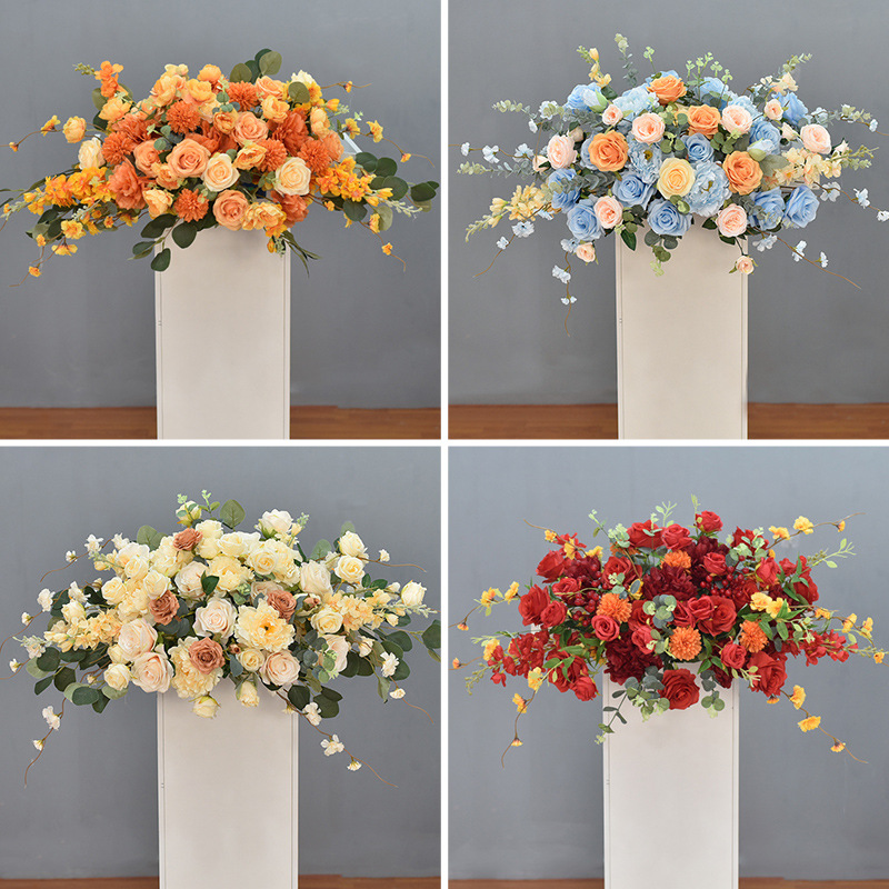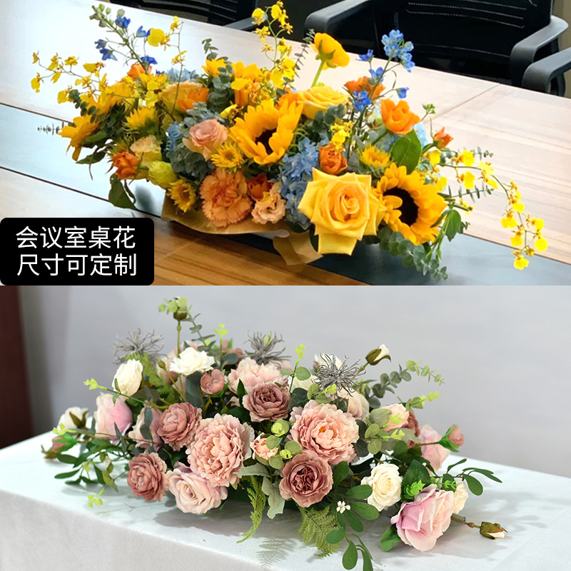 アマゾンの人気シミュレーション花の長いテーブルの装飾花ホテルのレストランのテーブルのテーブルの上の偽の花の置物はテーブルに署名して結婚します。
