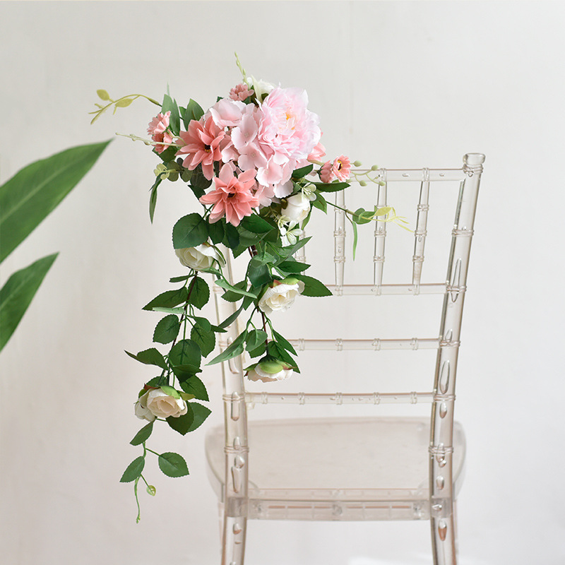 アマゾンの熱い販売の造花のシミュレーションの花の結婚祝いの椅子の背の花のホテルのレストランの店の結婚式の宴会のビジネスの活動の椅子