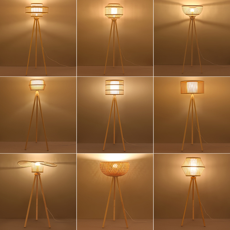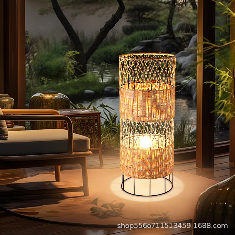 日本式フロアランプ寝室茶室禅意枕元民宿客間落日竹芸電気スタンド中国式日系竹編み灯