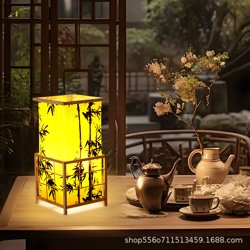 中国式古風電気スタンド禅意茶室書斎寝室ベッドヘッドランプ日本式復古充電竹編雰囲気小夜灯