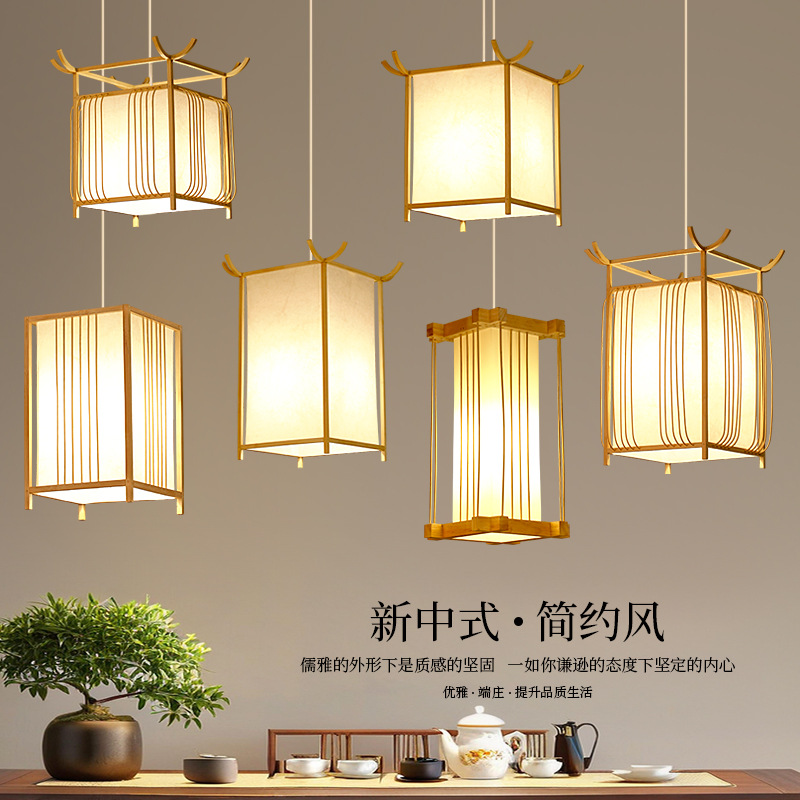 新中国式茶室シャンデリア禅意民宿中国式食堂灯日本式竹芸竹編み提灯シャンデリア中国風