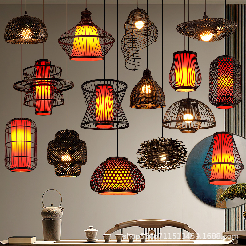 中国式竹芸竹編み禅意灯古典火鍋店レストラン旅館民宿日本式提灯茶楼シャンデリア