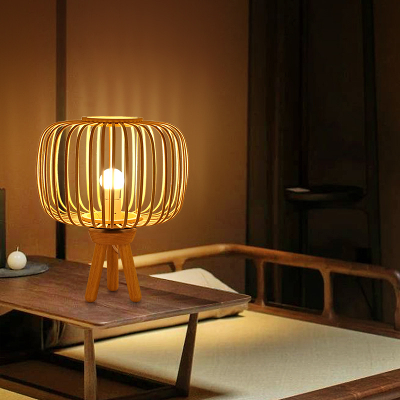 日本式装飾電気スタンド寝室竹編雰囲気ランプ禅意新中国式寂風電気スタンド民宿木芸ベッドヘッドライト