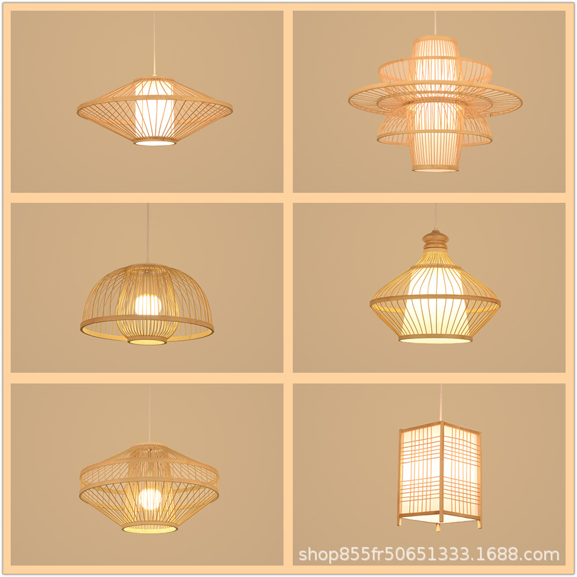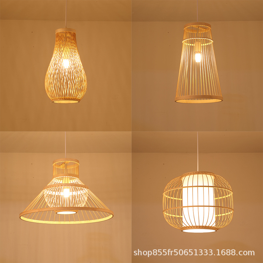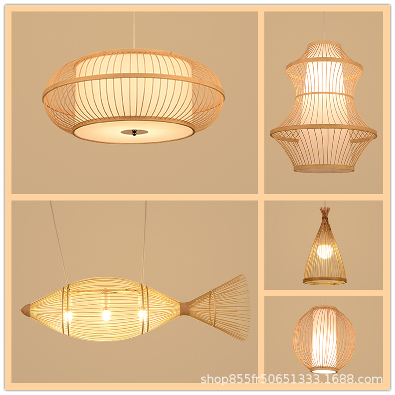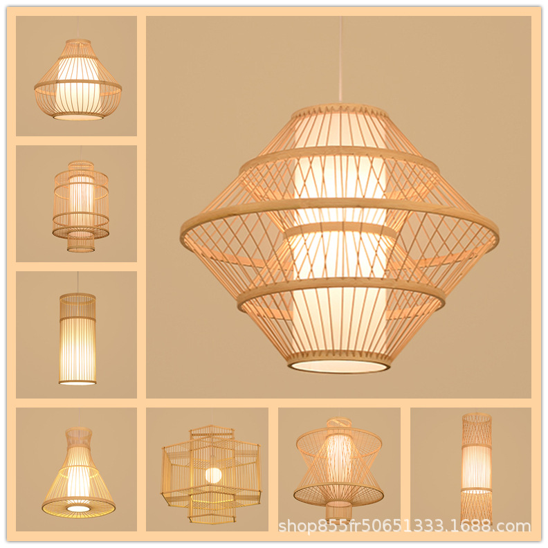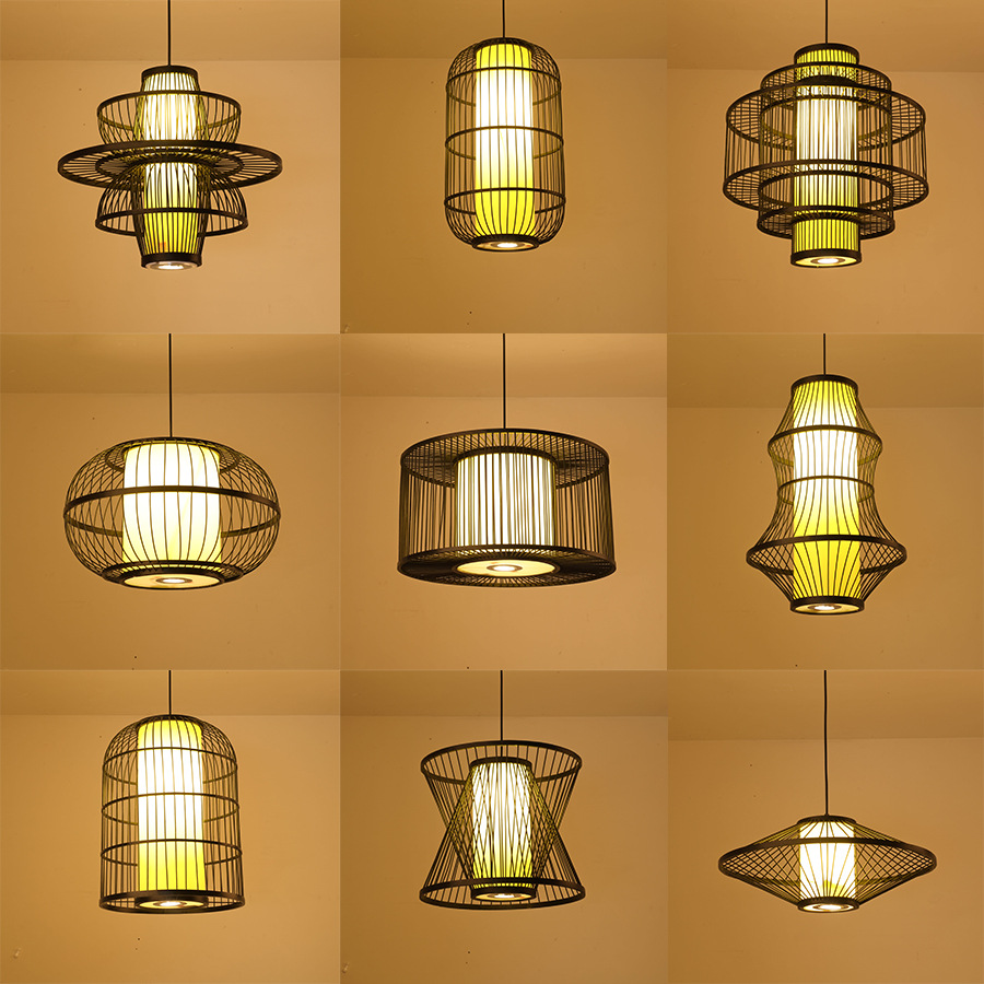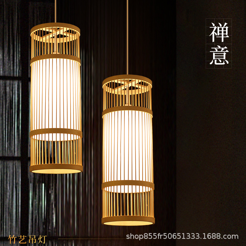 中国式竹シャンデリアバー竹編み鳥かごシャンデリア日本式茶室禅意民宿部屋特色食堂灯包郵便