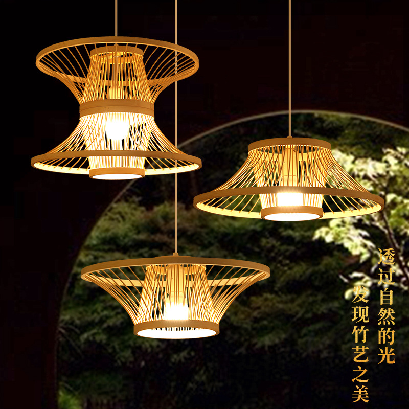 新中国式竹編み竹芸シャンデリア禅意茶室レストラン火鍋店民宿畳ホテル日本式竹灯具