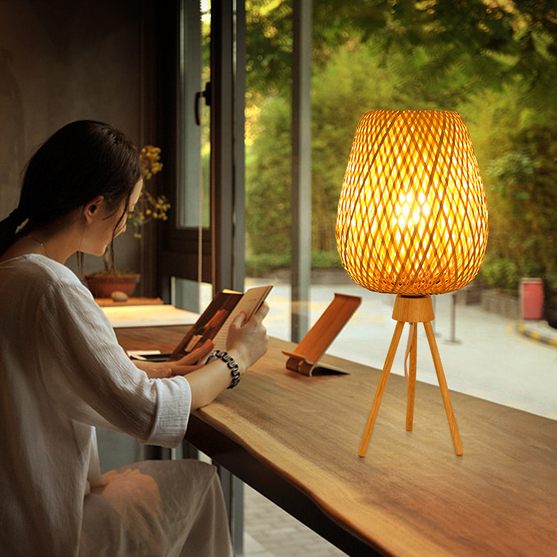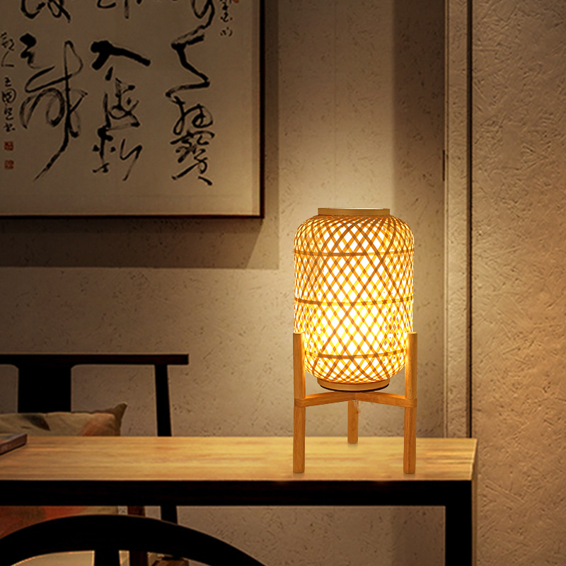 中国式古風竹木電気スタンド禅意茶室寝室ベッドヘッドランプ日本式レトロ竹編雰囲気小夜灯