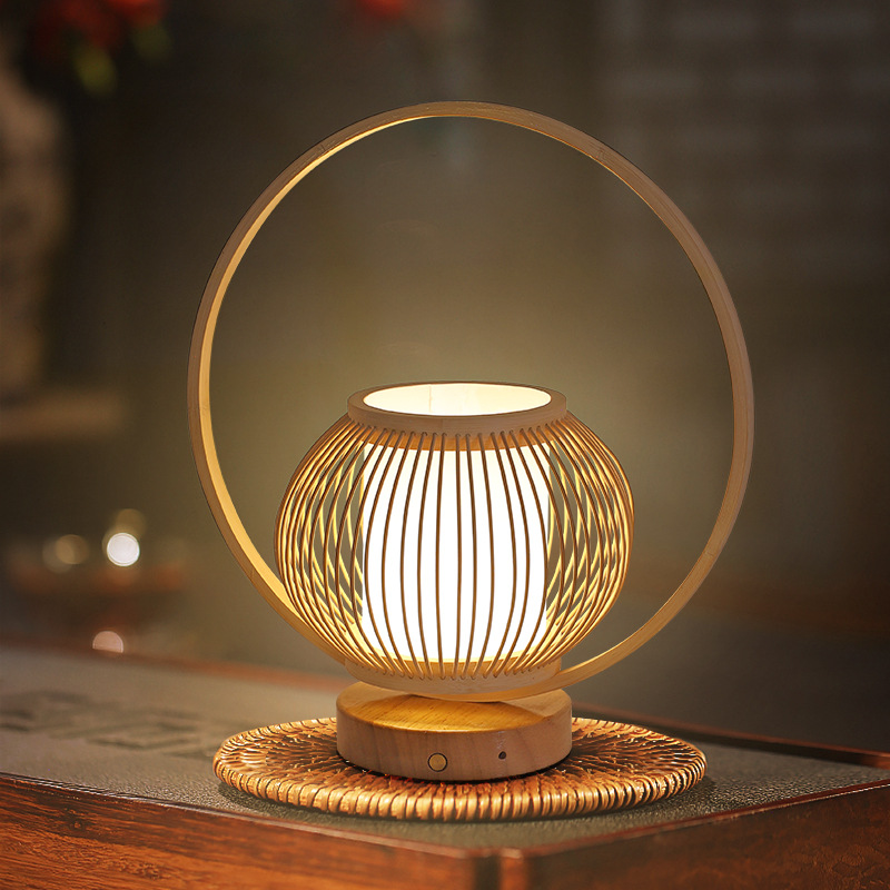 日本式和風手提げ竹芸装飾電気スタンド創意充電竹編み禅意新中国式民宿寝室ベッドサイドランプ