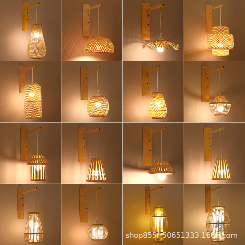 竹編み壁灯中国式竹芸灯創意個性日本式民宿茶室レストラン廊下東南アジア照明
